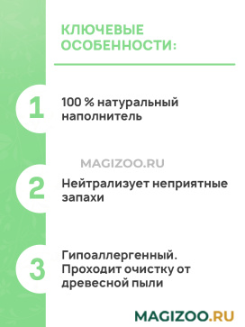 Рекомендации по применению: Животным с клеточным содержанием: насыпать слой в 2-3 см. При использовании для кошек и котят: под решётку 1-2 см; открытым способом 3-5 см.