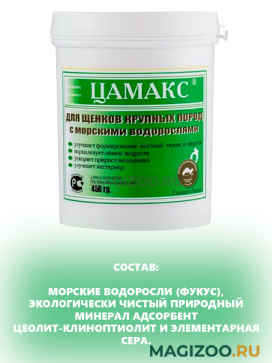 Ветеринарный препарат (кормовую добавку) ЦАМАКС с морскими водорослями ЦАМАКС с морскими водорослями для молодняка собак крупных пород (50-70 кг) применяют для: