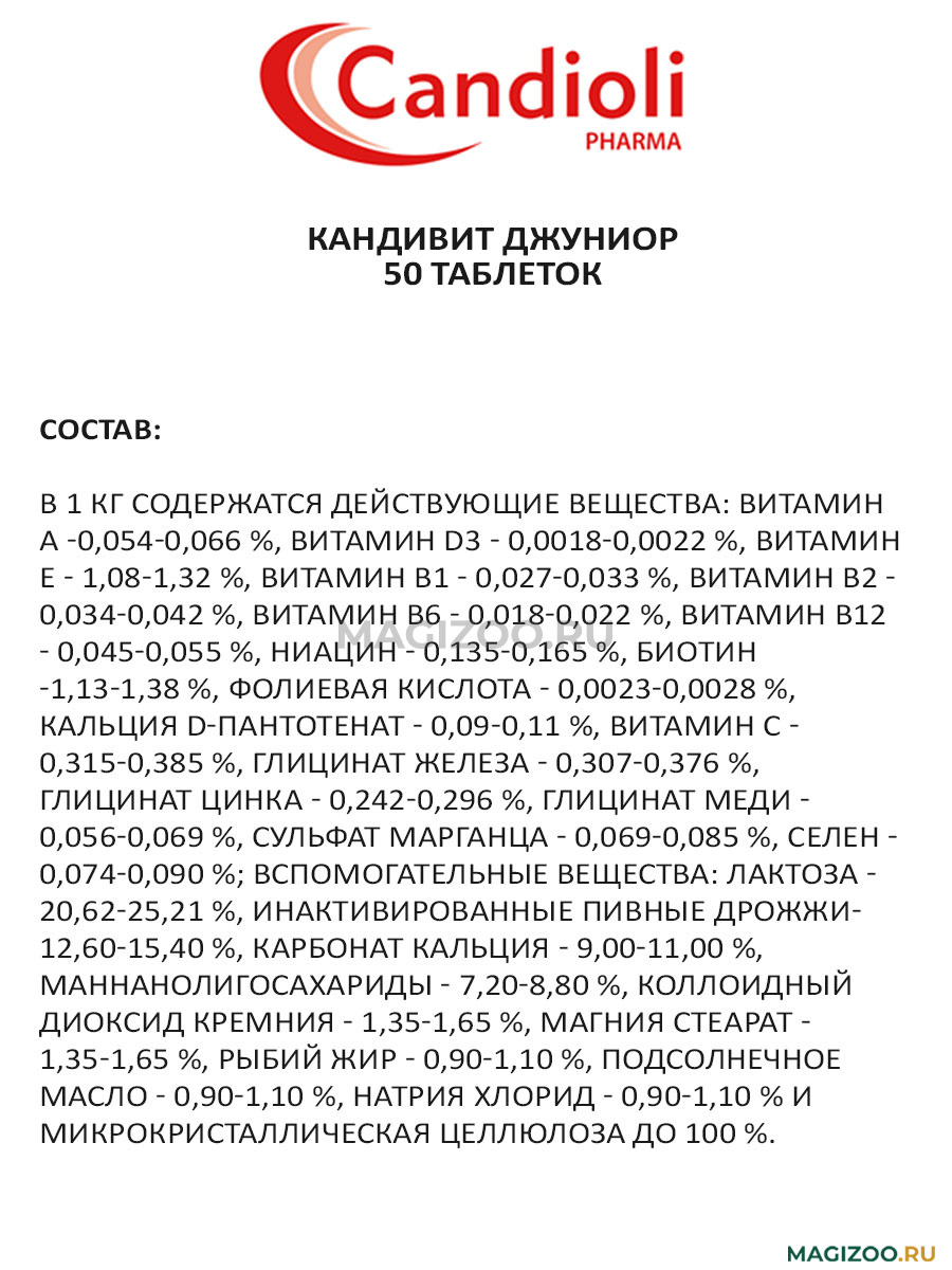 КандиВИТ Джуниор – кормовая добавка для обогащения витаминами и микроэлементами рациона щенков и нормализации обмена веществ.
