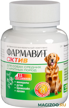 Фармавит Актив – витаминно-минеральный комплекс с фруктовыми энзимами, специально разработанный для собак средних и крупных пород.