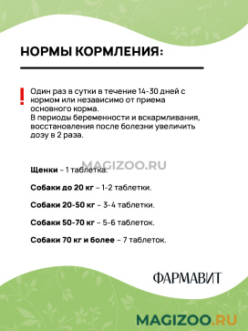 Собаки 20-50 кг – 3-4 таблетки.