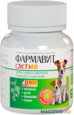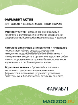 Фармавит Актив – витаминно-минеральный комплекс с фруктовыми энзимами, специально разработанный для собак мелких пород и щенков.