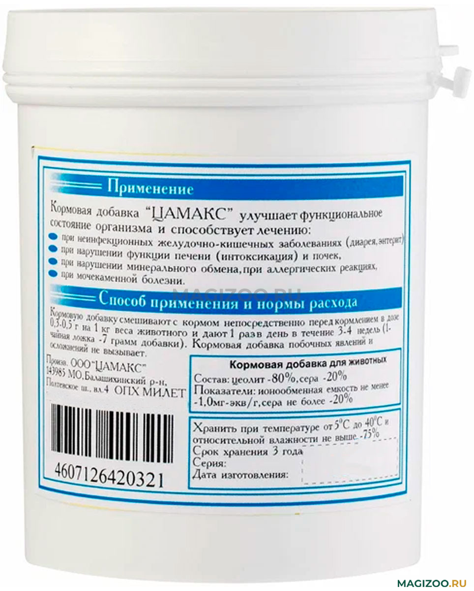 ЦАМАКС – это уникальных препараты для животных и птиц на основе природных цеолитов (сорбентов).