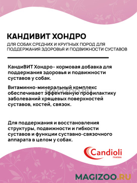 КандиВИТ Хондро– кормовая добавка для поддержания здоровья и подвижности суставов у собак.