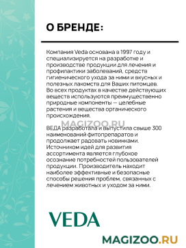 ВЕДА разработала и выпустила свыше 300 наименований фитопрепаратов и продолжает радовать новинками. Источником идей для развития ассортимента является глубокое осознание потребностей пользователей продукции. Производитель находит наиболее эффективные и безопасные способы решения проблем, связанных с лечением животных и уходом за ними. Фито-рецептуры препаратов получены в результате собственных прикладных исследований и основаны исключительно на натуральных экологически чистых компонентах.