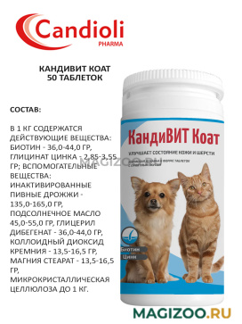 КандиВИТ Коат – кормовая добавка для нормализации обмена веществ и улучшения состояния кожи и шерстного покрова у собак и кошек.
