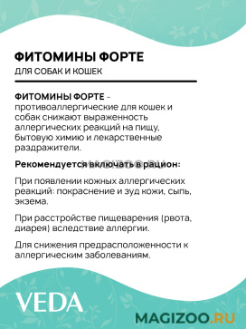 ФИТОМИНЫ ФОРТЕ - противоаллергические для кошек и собак снижают выраженность аллергических реакций на пищу, бытовую химию и лекарственные раздражители.