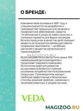ВЕДА разработала и выпустила свыше 300 наименований фитопрепаратов и продолжает радовать новинками. Источником идей для развития ассортимента является глубокое осознание потребностей пользователей продукции. Производитель находит наиболее эффективные и безопасные способы решения проблем, связанных с лечением животных и уходом за ними. Фито-рецептуры препаратов получены в результате собственных прикладных исследований и основаны исключительно на натуральных экологически чистых компонентах.