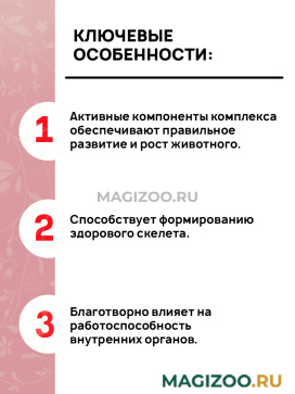 - Активные компоненты комплекса обеспечивают правильное развитие и рост животного.