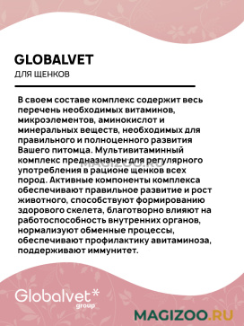 Мультивитаминный комплекс предназначен для регулярного употребления в рационе щенков всех пород. Активные компоненты комплекса обеспечивают правильное развитие и рост животного, способствуют формированию здорового скелета, благотворно влияют на работоспособность внутренних органов, нормализуют обменные процессы, обеспечивают профилактику авитаминоза, поддерживают иммунитет.