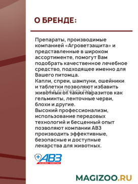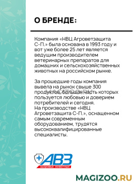 Высокий профессионализм, использование передовых технологий и бесценный опыт позволяют компании АВЗ производить эффективные, безопасные и доступные лекарства для животных.