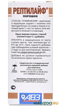 Черепахам и ящерицам для нормализации обмена веществ, повышения резистентности организма, восполнения недостаточности витаминов, макро- и микроэлементов, поддержания репродуктивной функции, улучшения состояния кожи и панциря в периоды интенсивного роста, и при стрессах.