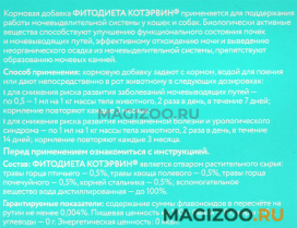 ФИТОДИЕТА КОТЭРВИН применяется для поддержания работы мочевыделительной системы у кошек и собак.