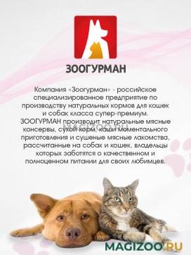 Компания «Зоогурман» - российское специализированное предприятие по производству натуральных кормов для кошек и собак класса супер-премиум.