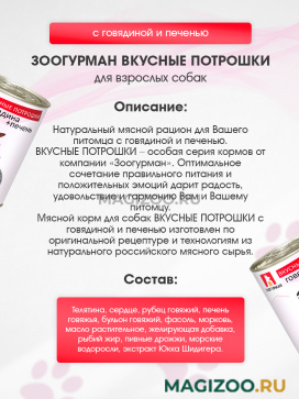 Мясной корм для собак ВКУСНЫЕ ПОТРОШКИ с говядиной и печенью изготовлен по оригинальной рецептуре и технологиям из натурального российского мясного сырья.