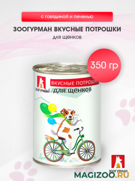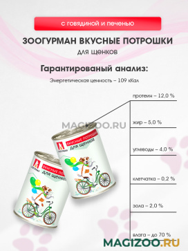 Подходит для щенков всех пород, имеет консистенцию среднего или крупного мясного фарша (в зависимости от веса банки).