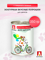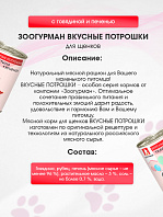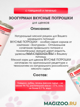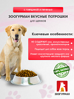 Мясной корм для щенков ВКУСНЫЕ ПОТРОШКИ изготовлен по оригинальной рецептуре и технологиям из натурального российского мясного сырья.