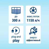 Благодаря применению современных энергосберегающих двигателей и высококачественным прокладкам под камерой ротора, фильтр обладает увеличенной мощностью насосов. Кроме того, Turbo качественно насыщает воду кислородом даже на больших глубинах, где фильтры иных производителей неэффективны.