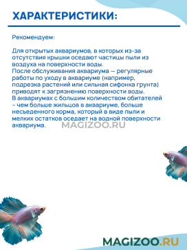 - Для открытых аквариумов, в которых из-за отсутствия крышки оседают частицы пыли из воздуха на поверхности воды.