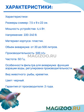 Информация о составе и ингредиентах, цветовом решении, технических и иных характеристиках, стране-изготовителе, внешнем виде и комплекте поставки товара носит справочный характер и основана на последних доступных к моменту публикации сведениях. Доставка данного товара осуществляется во все регионы РФ.К основным группам изделий относятся аквариумные фильтры, нагреватели, крышки с осветительными модулями, аэраторы, полностью оснащенные аквариумные наборы. Особое внимание уделяется внедрению инноваций и уникальных технических решений.
