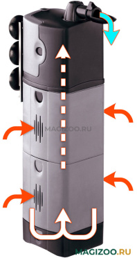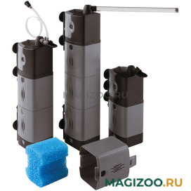 Внутренний фильтр BLUMODULAR помогает поддерживать воду в чистоте даже в перенаселенных аквариумах. Модули (которые могут быть соединены между собой и добавлены при желании) позволяют одновременно использовать различные материалы, гарантируя высокую мощь и быстрое течение. Указанные материалы могут быть заменены по желанию. В любом случае, губка с крупными порами должна использоваться в первом модуле (внизу фильтра), чтобы собирать крупные частицы. Другие могут быть заполнены фильтрующими наполнителями по желанию.