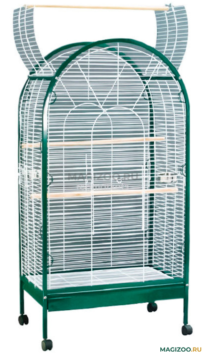 Большая основная дверь и открывающийся верх, на который можно закрепить съемную жердочку, обеспечивает удобный для птицы присяд для прогулок вне клетки.