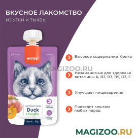 Мясной мусс из утки и тыквы Wanpy Cat — это уникальное лакомство, которое не только порадует вашего питомца своим изысканным вкусом, но и обеспечит его необходимыми витаминами и минералами.