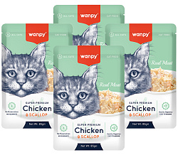 Влажный корм (консервы) WANPY CAT для кошек с курицей и креветками (95 гр)