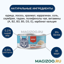 Wanpy Cat консервы для кошек с курицей и лососем - это высококачественный сбалансированный корм, который обеспечит Вашего питомца необходимыми витаминами и минералами.