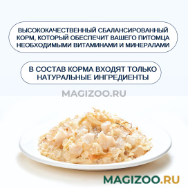 В состав корма входят только натуральные ингредиенты: курица и треска, которые являются источником белка, необходимого для поддержания мышечной массы и здоровья кожи и шерсти.