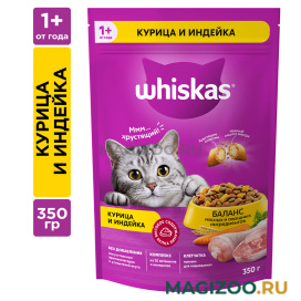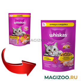 Вкусные подушечки с нежным паштетом – аппетитное ассорти с курицей и индейкой. Побалуйте своего питомца полноценным сухим кормом Whiskas для взрослых кошек! Это сбалансированный рацион для здоровой и счастливой жизни Вашей кошки.