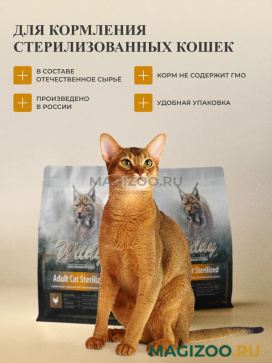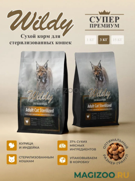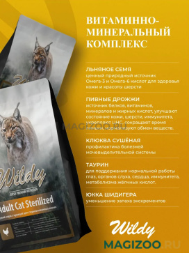 WILDY ADULT CAT STERILIZED - полнорационный корм высшей категории качества с курицей для взрослых кастрированных котов и стерилизованных кошек.