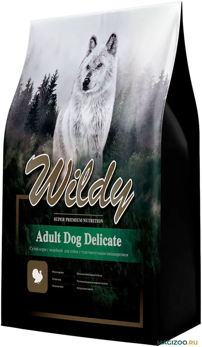 Wildy Adult Dog Delicate - полнорационный корм высшей категории качества с индейкой для взрослых собак с чувствительным пищеварением.