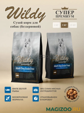 WILDY ADULT DOG GRAIN FREE – полнорационный беззерновой корм высшей категории качества с белой рыбой для взрослых собак.