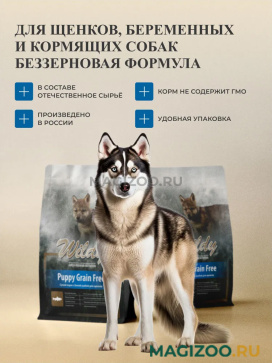 WILDY PUPPY GRAIN FREE – полнорационный беззерновой корм высшей категории качества с белой рыбой для щенков.
