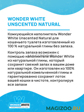 Комкующийся наполнитель Wonder White Unscented Natural для кошачьего туалета изготовленный из 100 % натуральной глины без запаха.
