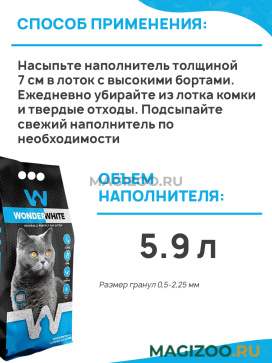 Информация о составе и ингредиентах, цветовом решении, технических и иных характеристиках, стране-изготовителе, внешнем виде и комплекте поставки товара носит справочный характер и основана на последних доступных к моменту публикации сведениях. Доставка данного товара осуществляется во все регионы РФ.Наполнители для кошачьих туалетов Wonder White отличаются высокой гигиеничностью, поскольку они производятся путем термической обработки, а также не содержат пыли, благодаря системе двойного просеивания. Таким образом, мы создали супер-гигиеничную и комфортную среду для наших питомцев и их владельцев.
