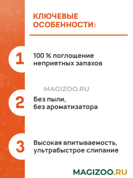 Плотно слипается до того, как жидкость достигает дна лотка менее чем за 3 секунды, и не развалится на части, блокируя неприятные запахи. Лоток питомца всегда будет сухим и чистым.