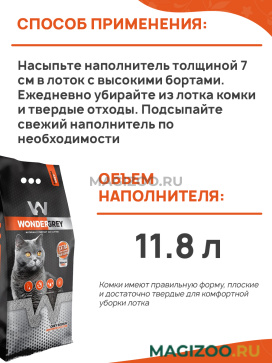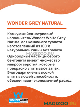 Комкующийся натриевый наполнитель Wonder White Grey Natural для кошачьего туалета изготовленный из 100 % натуральной глины без запаха.