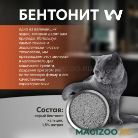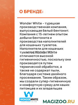 Комкующийся натриевый наполнитель Wonder White Grey Natural для кошачьего туалета изготовленный из 100 % натуральной глины без запаха.