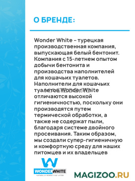 Wonder White – турецкая производственная компания, выпускающая белый бентонит. Компания с 15-летнем опытом добычи бентонита и производства наполнителей для кошачьих туалетов.