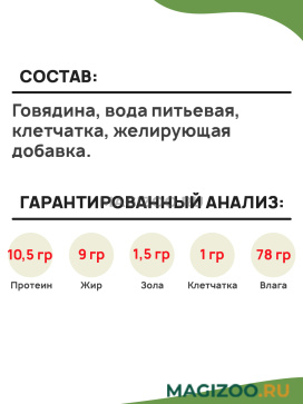 Говядина, вода питьевая, клетчатка, желирующая добавка.