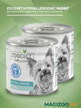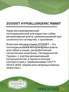 Корм консервированный полнорационный для взрослых собак ветеринарная диета, рекомендуемый при склонности к аллергии, с кроликом.