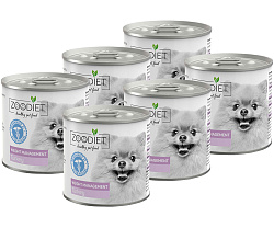 Влажные мясные корма ZOODIET – это полнорационные ветеринарные диеты для собак и кошек, разработанные технологами компании «Четвероногий Гурман» с учетом рекомендаций нутрициологов, а также в полном соответствии с требованиями ГОСТ Р 55453-2022 «Корма для непродуктивных животных».