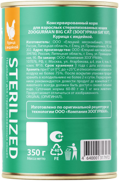 Информация о составе и ингредиентах, цветовом решении, технических и иных характеристиках, стране-изготовителе, внешнем виде и комплекте поставки товара носит справочный характер и основана на последних доступных к моменту публикации сведениях. Доставка данного товара осуществляется во все регионы РФ.ЗООГУРМАН производит натуральные мясные консервы, сухой корм, каши моментального приготовления и сушеные мясные лакомства, рассчитанные на собак и кошек, владельцы которых заботятся о качественном и полноценном питании для своих любимцев.