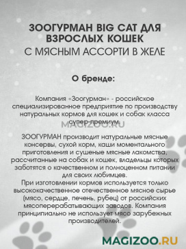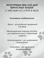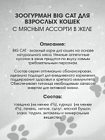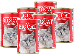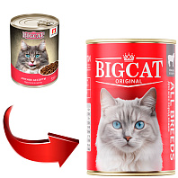BIG CAT - влажный корм для кошек на основе натурального мяса. Нежные аппетитные кусочки в желе придутся по вкусу самым требовательным персонам.