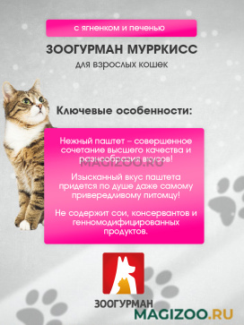 Информация о составе и ингредиентах, цветовом решении, технических и иных характеристиках, стране-изготовителе, внешнем виде и комплекте поставки товара носит справочный характер и основана на последних доступных к моменту публикации сведениях. Доставка данного товара осуществляется во все регионы РФ.ЗООГУРМАН производит натуральные мясные консервы, сухой корм, каши моментального приготовления и сушеные мясные лакомства, рассчитанные на собак и кошек, владельцы которых заботятся о качественном и полноценном питании для своих любимцев.