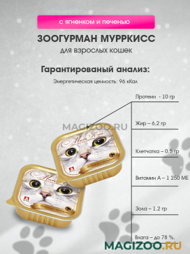 Полноценный консервированный корм для взрослых кошек с ягненком и печенью.