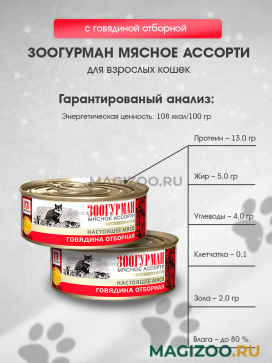 Информация о составе и ингредиентах, цветовом решении, технических и иных характеристиках, стране-изготовителе, внешнем виде и комплекте поставки товара носит справочный характер и основана на последних доступных к моменту публикации сведениях. Доставка данного товара осуществляется во все регионы РФ.ЗООГУРМАН производит натуральные мясные консервы, сухой корм, каши моментального приготовления и сушеные мясные лакомства, рассчитанные на собак и кошек, владельцы которых заботятся о качественном и полноценном питании для своих любимцев.