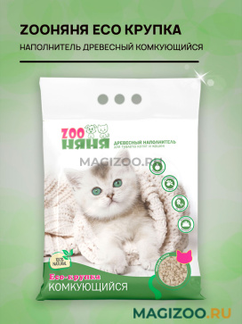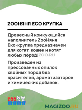 Древесный комкующийся наполнитель ZooНяня Еко-крупка предназначен для котят, кошек и котят любых пород.